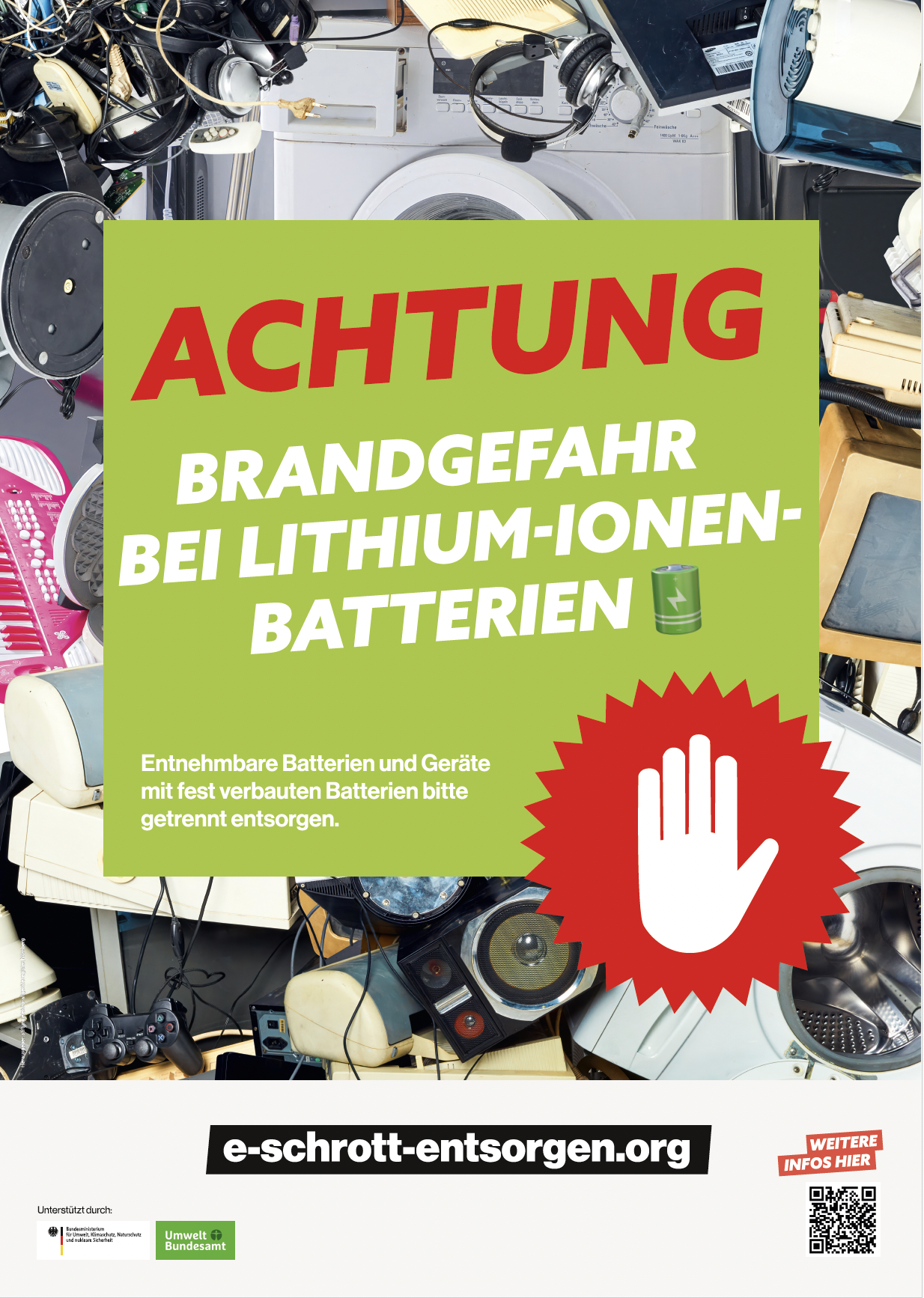 Plakatmotiv zur sicheren Entsorgung von Lithium-Ionen-Batterien, DINA 2, einseitig bedruckt