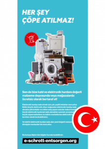 Allgemeiner Infoflyer zur fachgerechten E-Schrott-Entsorgung – deutschsprachig, DIN lang, Wickelfalz, 10 Seiten, beidseitig bedruckt.