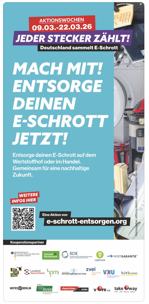 Infoflyer zu den Aktionswochen „Jeder Stecker zählt!“, DIN lang, 2 Seiten, beidseitig bedruckt
